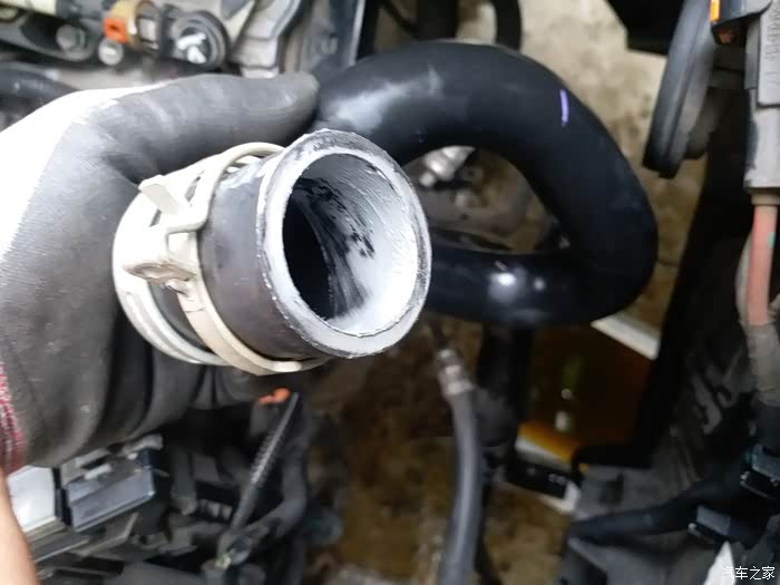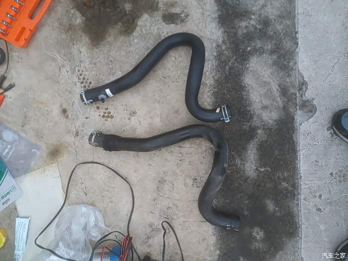 这个是被腐蚀漏水的。想到冷却液管子万一爆了,就给扔到路上了。所以最近买了根原厂的上水管,今天有空自己动手换了。顺便更换已经使用了三年的防冻液。