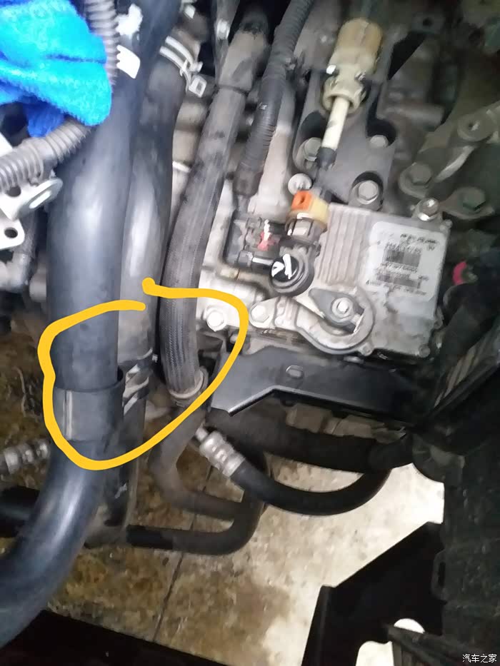防火墙热交换管子也有个排气口。加新防冻液前,三个排气口都打开。然后加新的就行。变价边看排气口有没有溢出。第一桶倒下去没反应。继续加第二桶。