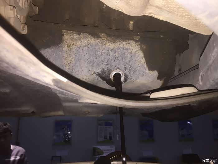 这个就是机油滤芯的位置了,就在发动机的最下方。
