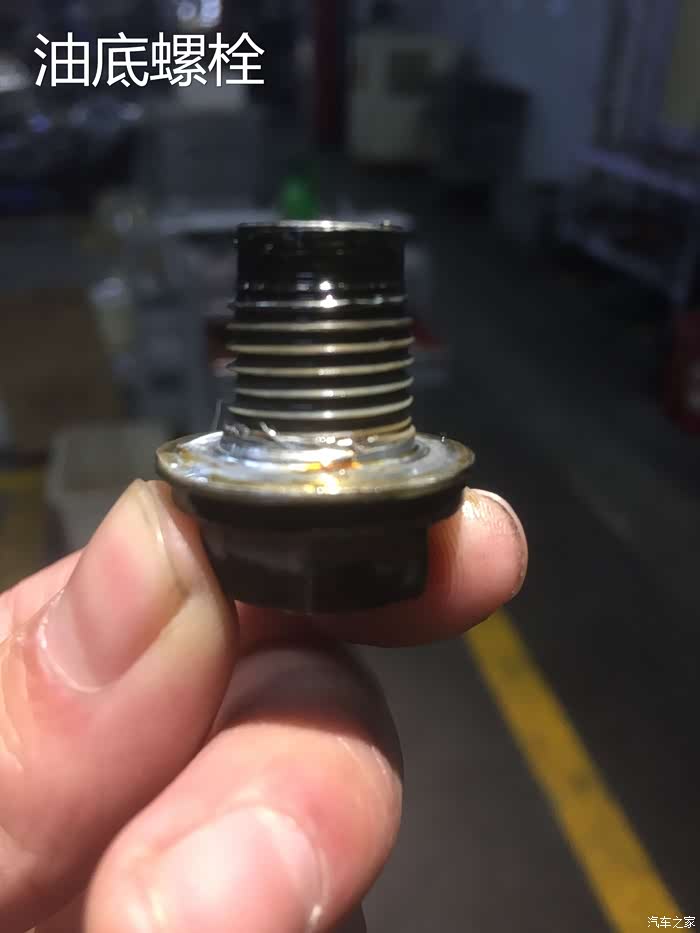 这个油底螺栓的状态还算好,没有任何的溢扣和磨损的痕迹。在安装油底螺栓的时候一定要用扭矩扳手上紧,过度用力会直接的导致油底螺栓坏掉的。这也是为什么很多的油底螺栓通常拧几次都挂掉了,主要就是因为过度的拧紧力矩直接的伤害到了螺纹。