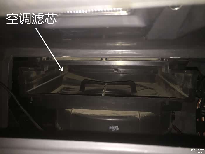 空调滤芯的位置有一些刁钻,将手套箱拆卸下来。便可以见到这个空调滤芯了,通常空调滤芯的位置下方就是鼓风机,通过寻找鼓风机也可以找到空调滤芯。不过很多的德系车型将空气滤芯放到了前部波水板的下面,采用了双空调滤芯设计。