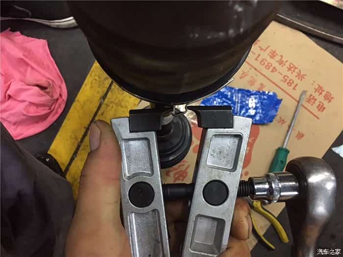 用专用工具对卡子进行紧固,可以保证有效并且准确的安装到位,工欲善其事,必先利其器嘛。更换完毕,进行装车,由于安装的过程过于冗长,我就不再这里一一的进行赘述了。