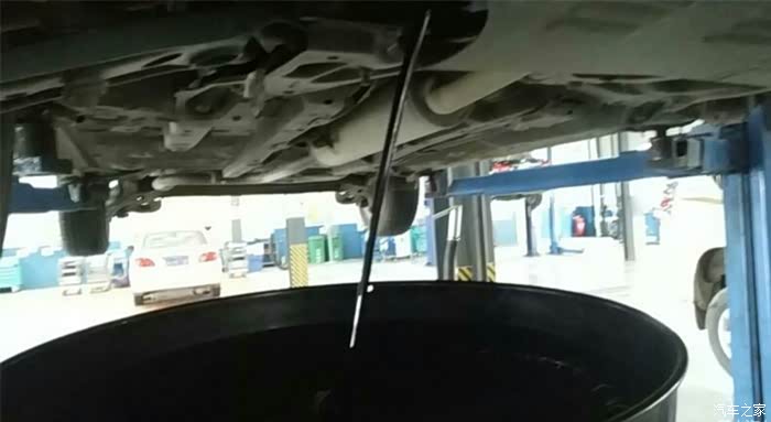 举升车辆检查师傅检查发现发动机护板有托底,幸好是我提前就装了护板,没有对发动造成伤害,就损坏了护板,不是说有舍才有得吗!再说拖的很轻微。在此提醒广大车主加装车辆防护还是很有必
