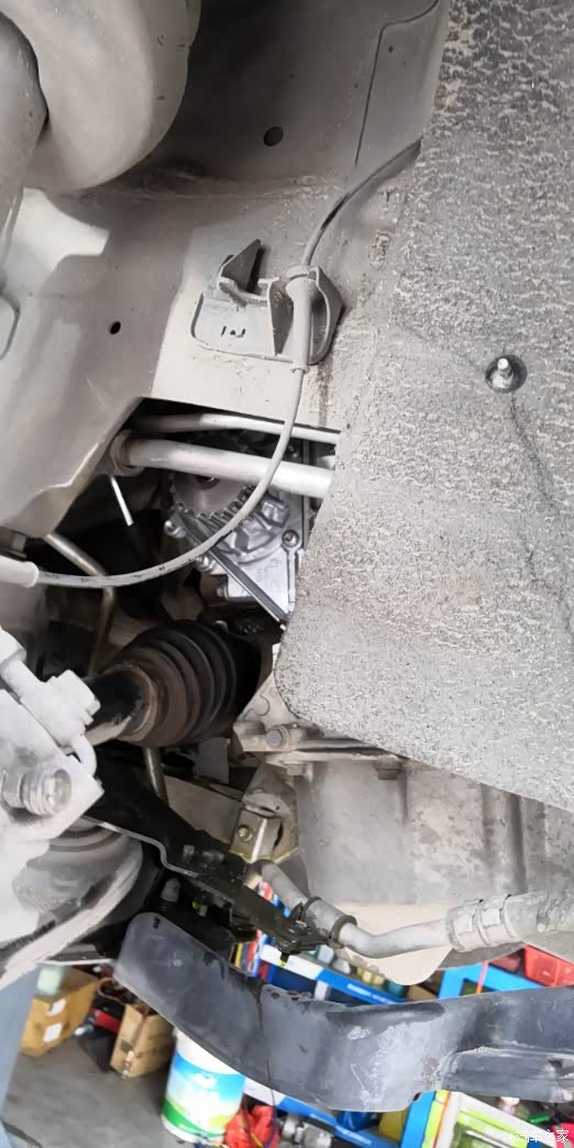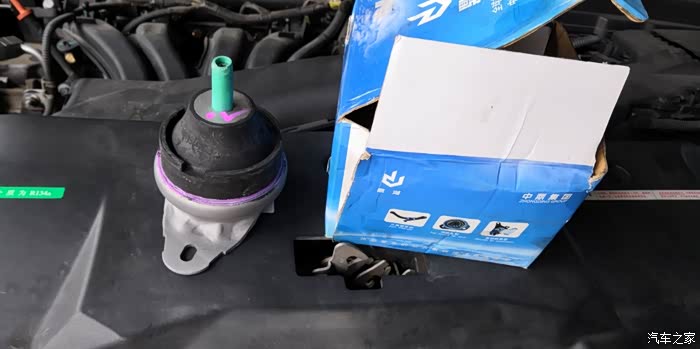 技师检查出来有一个发动机橡胶垫坏了,裂了并塌下去了。
