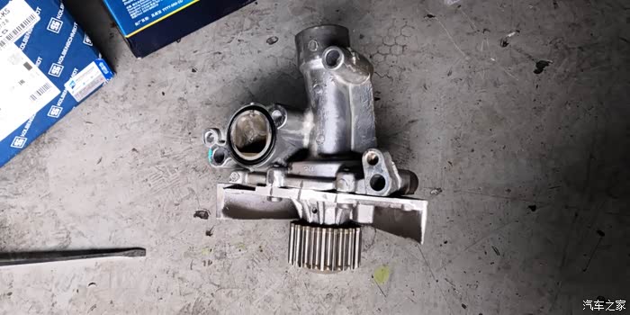 装车后的样子,位置在右前轮旁边。动力是正时皮带提供的,这就是为啥正时皮带和水泵建议一起换的道理了。