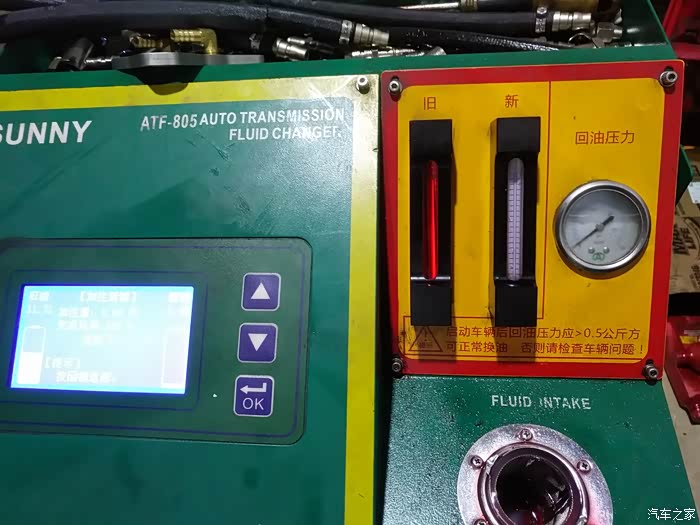 新油,说明,最后打开螺丝,油从垂直连续成线漏出变为不规则滴出即可。
