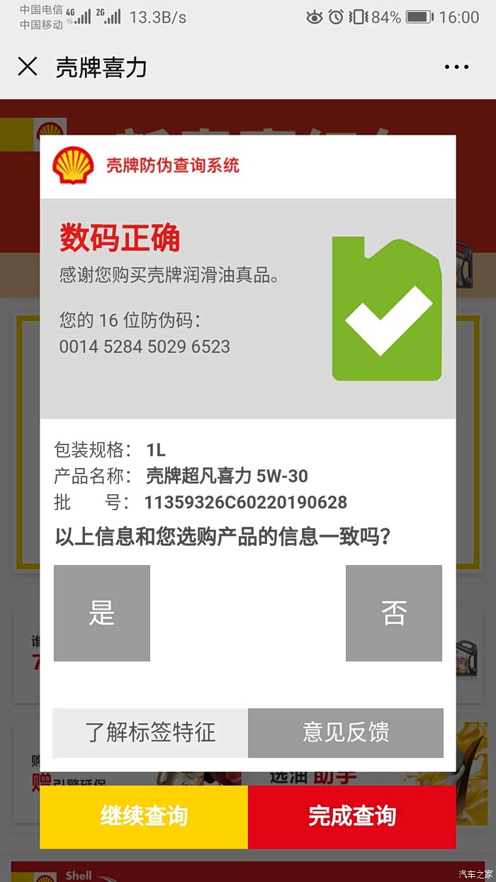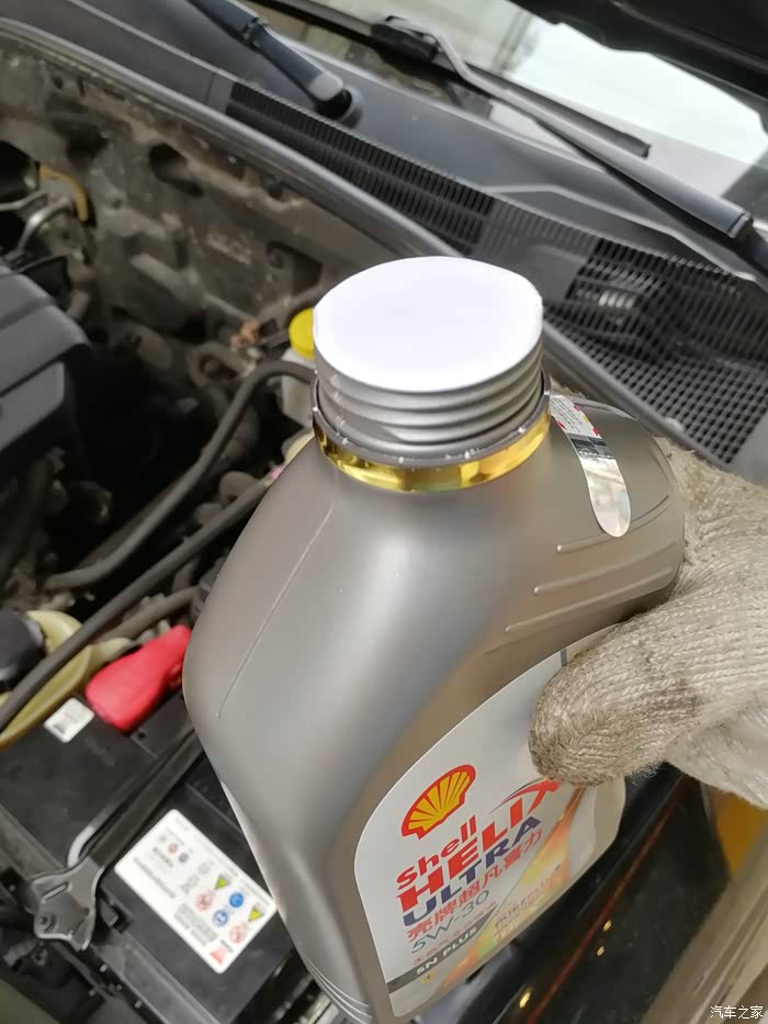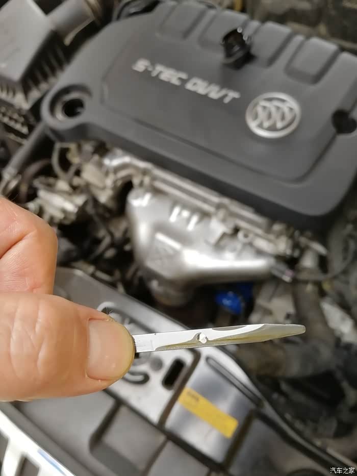 过几分钟抽出机油尺刚好中间位置,刚好够。以后就买一升的好了,买三升就够,不用买大桶的纠结剩一点怎么处理。