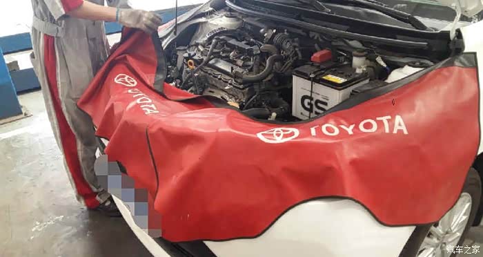 取下发动机保护壳,为了防止操作过程中,会刮蹭到车漆,工作人员给小威苫上一层保护布