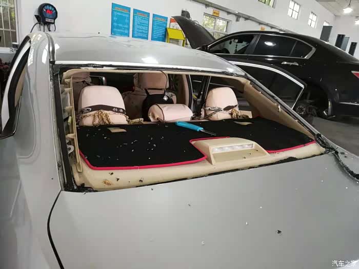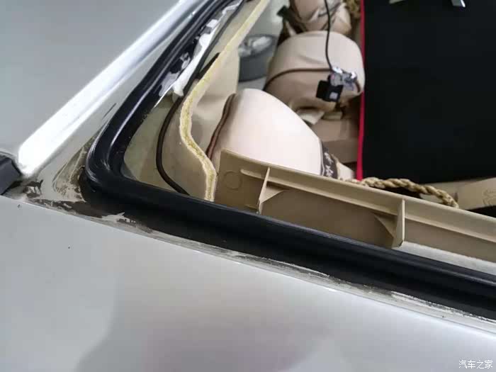 为方便各位看清楚,拍了拆下玻璃的图片,第一步就是将左右两边的内饰板拆开,与玻璃分开一定距离。