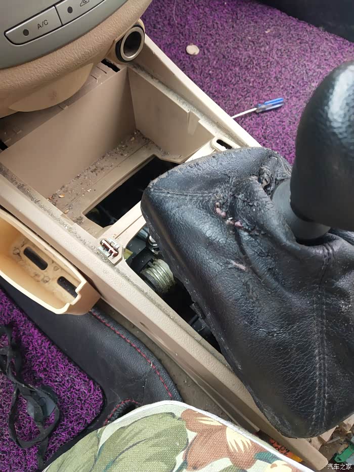 先把挂挡防尘套拔出来,撬开上面的面板。