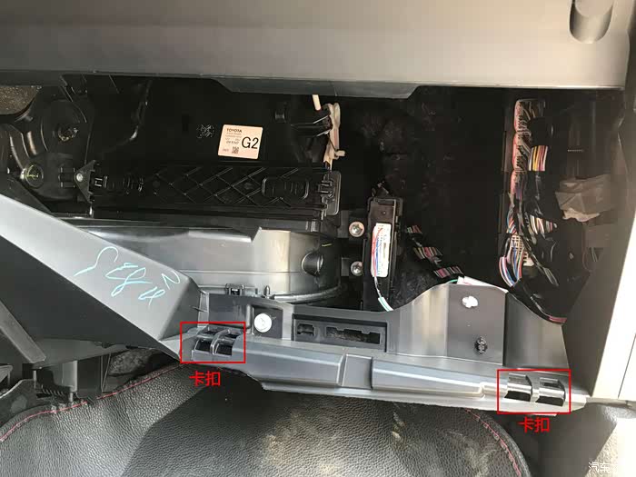 这就是手套箱和下方卡扣对接的示意图,他们是卡在一起的