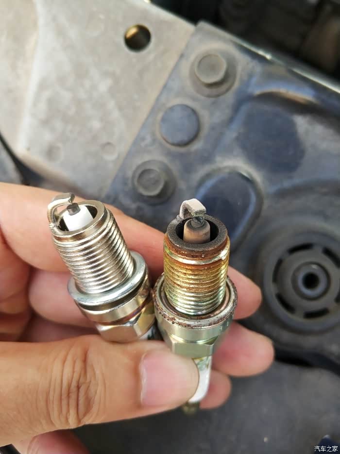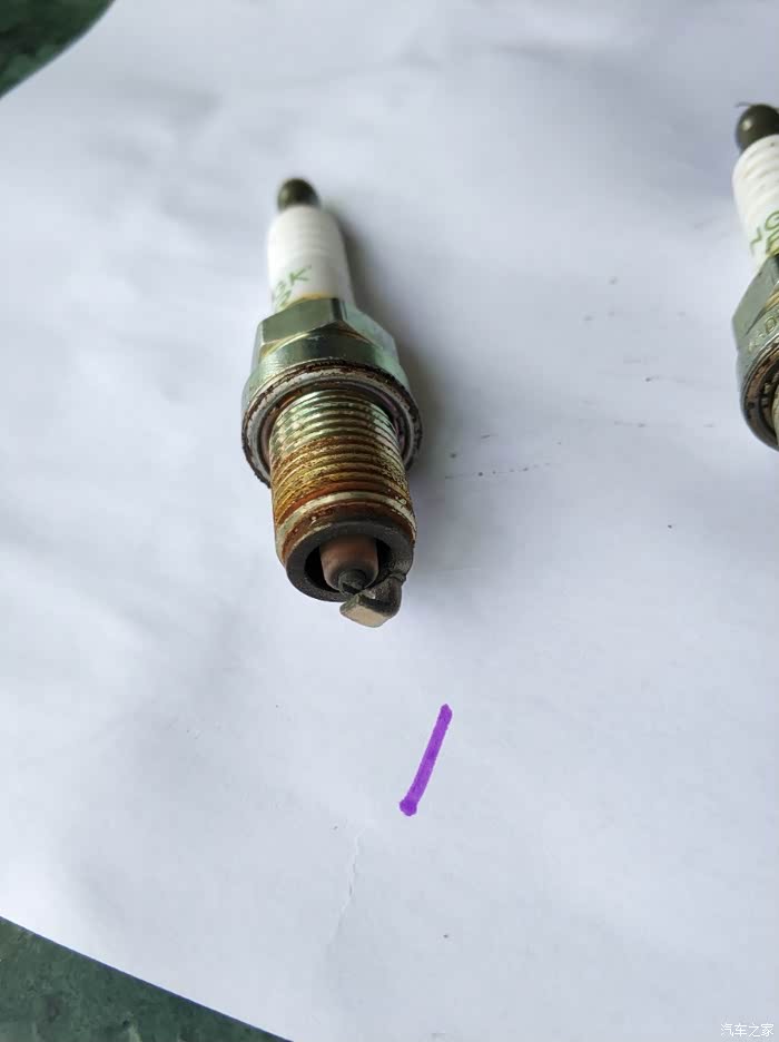 一缸拆下的和新的对比,换下的头上有V槽,新的头上是平的。燃烧的还不错。