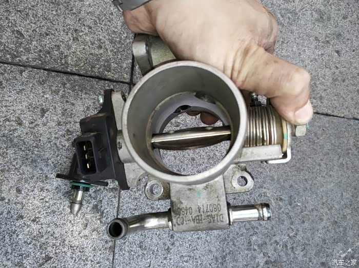 节气门进气侧,脏。(数字猜是:08年7月14日出厂的配件。)