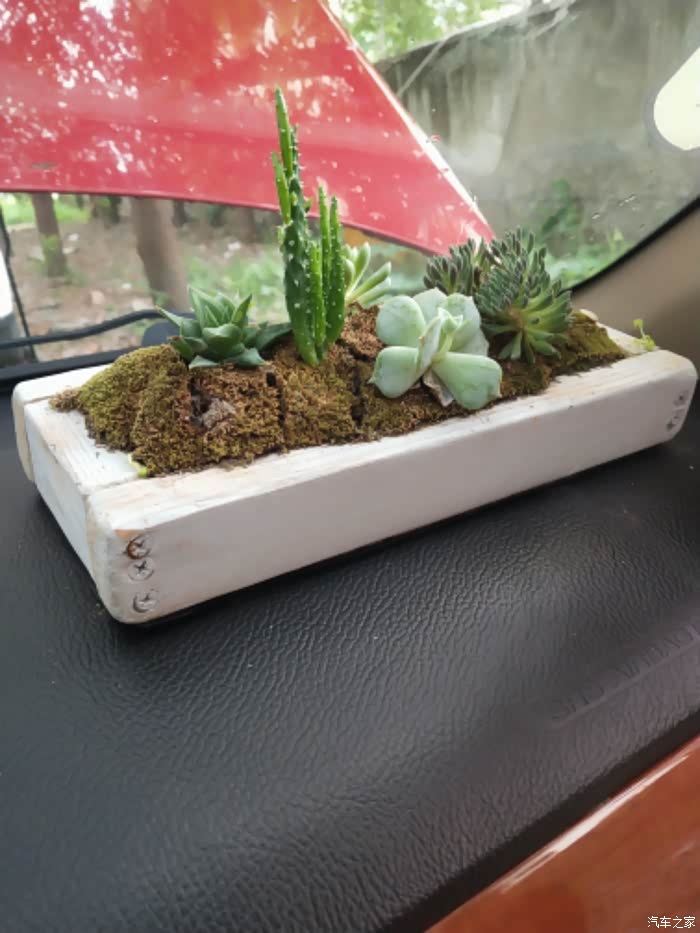 顺便秀一下车内养殖的多肉植物。