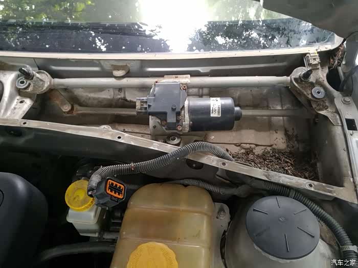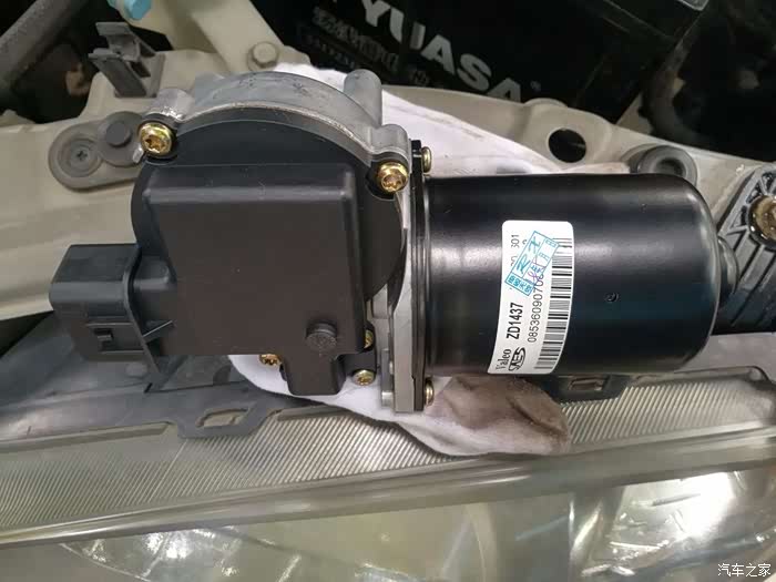 前几天下小雨,开车时发现雨刮慢档失灵了,一开就不停的刮,而且那个抬一下就刮一下的档也不听使唤了,抬一下一松手,雨刮当时在啥位置就会立刻停下来,不会回到最下面去了。估计是雨刮的控制系统出问题了,看到网上有用烙铁烫开补焊的作业,可是我没有热胶枪,用AB胶修补又要等它干呀。算了,换个电机总成吧,还是买原装的法雷奥,质量有保障!