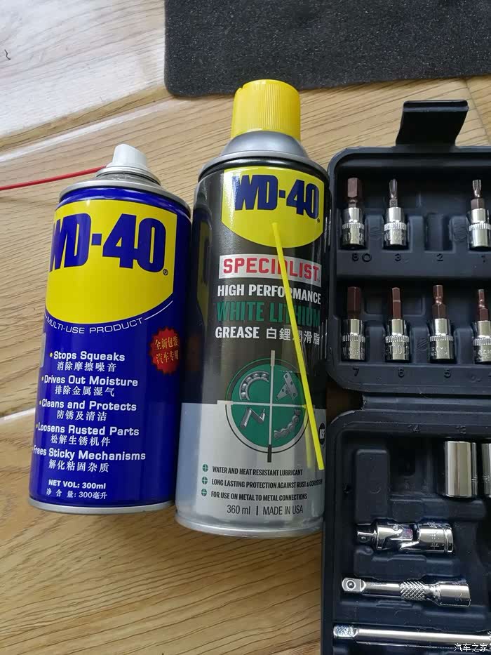 各活动部位和生锈的部位用WD40清洗剂喷射了N遍,安装前活动关节都要再喷右边这个白锂润滑脂