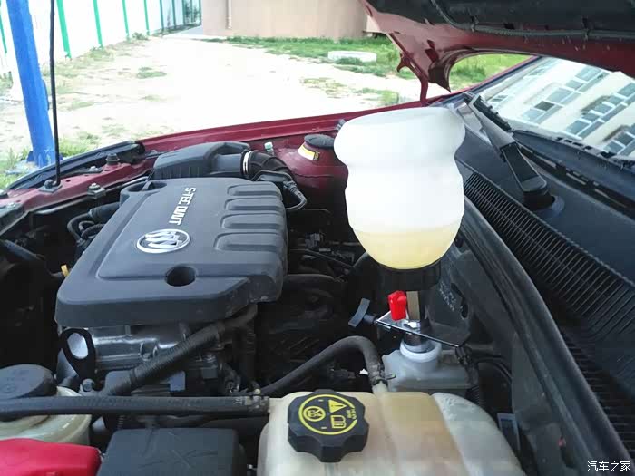 大神的座驾是别克君威,也是红色的。我俩选车颜色比较一致。刚贴好的隐形车衣帅呆了!感谢大神教会了我怎么更换刹车油。期待下次能够真正自己更换了!