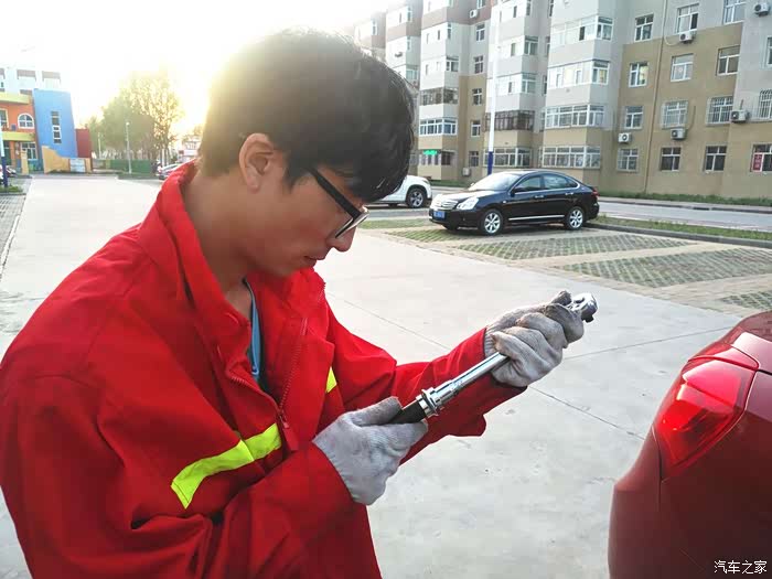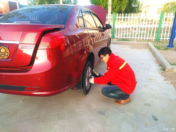 顺利完成2个后轮的更换,开始更换前轮。前轮因为离着油壶比较近抽的比较少,所以很快就完成了。