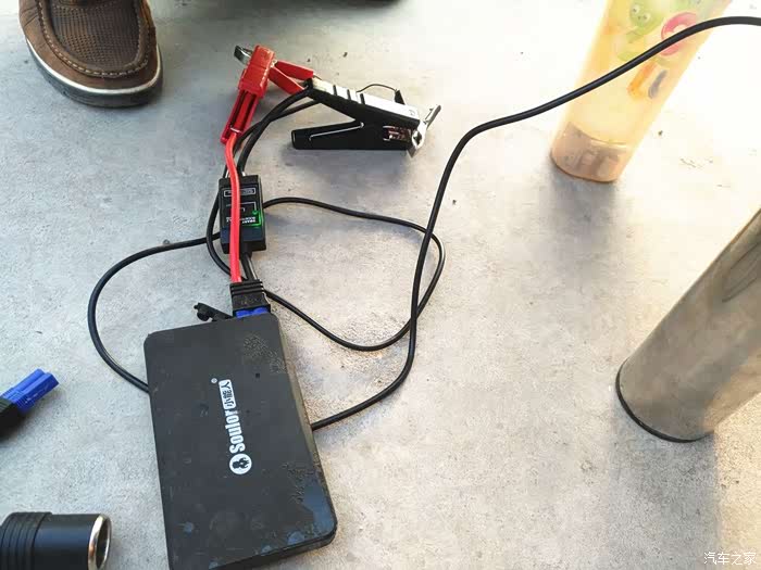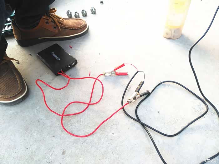 真空泵取电用的是小能人应急启动宝。前面因为取电方便,就直接用电瓶夹通过电瓶取电。先接红线正极,再接黑线负级。后面还出了一些小状况,差点让这次换油工作停止。不过幸好大神机智成功化解,后面再详细介绍。