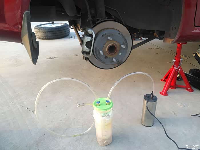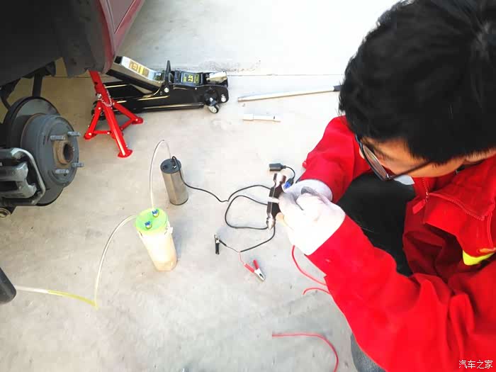 这废液壶带有刻度的,大神正在计算每个轱辘的排气孔抽出多少油液来。