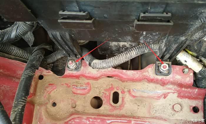 取掉电瓶以后就可以看到保险盒的两个螺丝了,先拆这两个螺丝