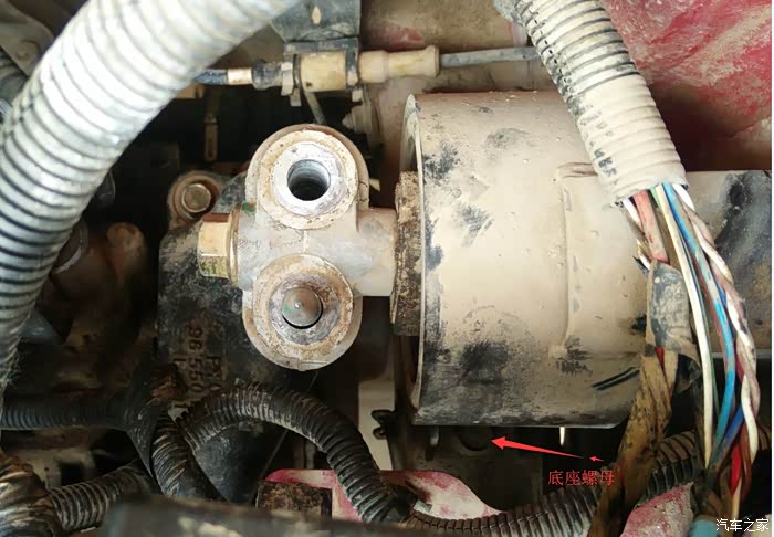 拆掉保险盒的三个螺母以后就可以取下保险盒了,去保险盒的时候最好轻一点,下面全是线,万一弄断就麻烦了,取掉保险盒就可以看到机脚垫了