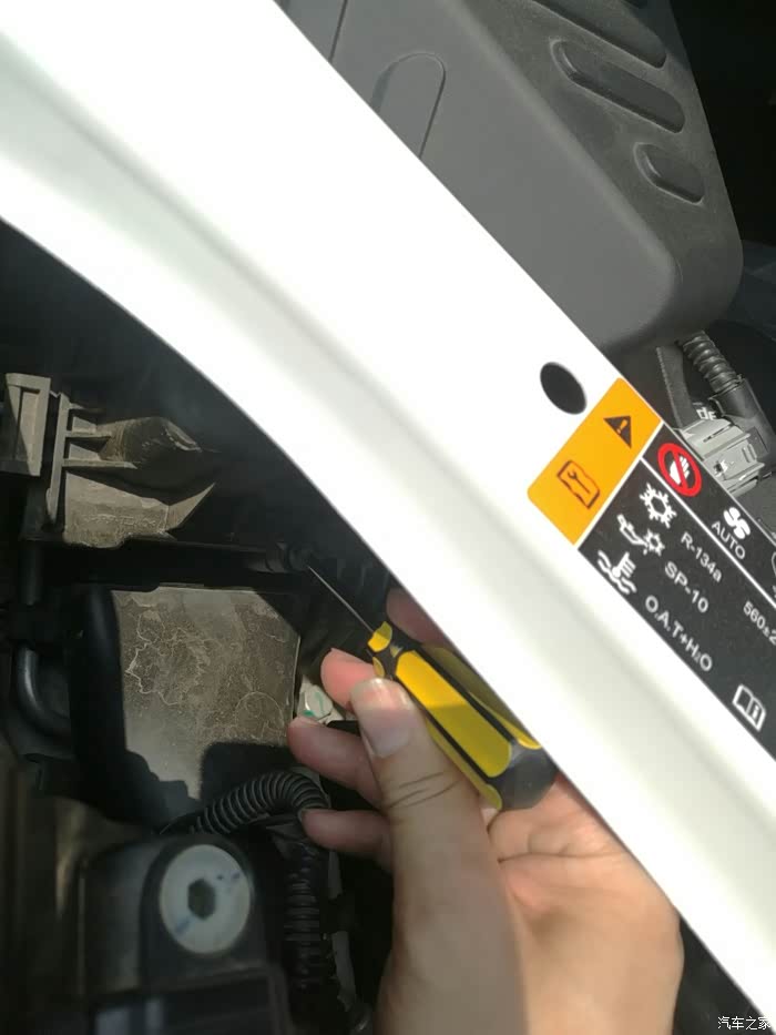 打开发动机舱盖,找到如下地方