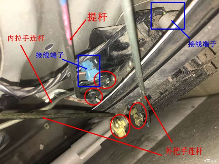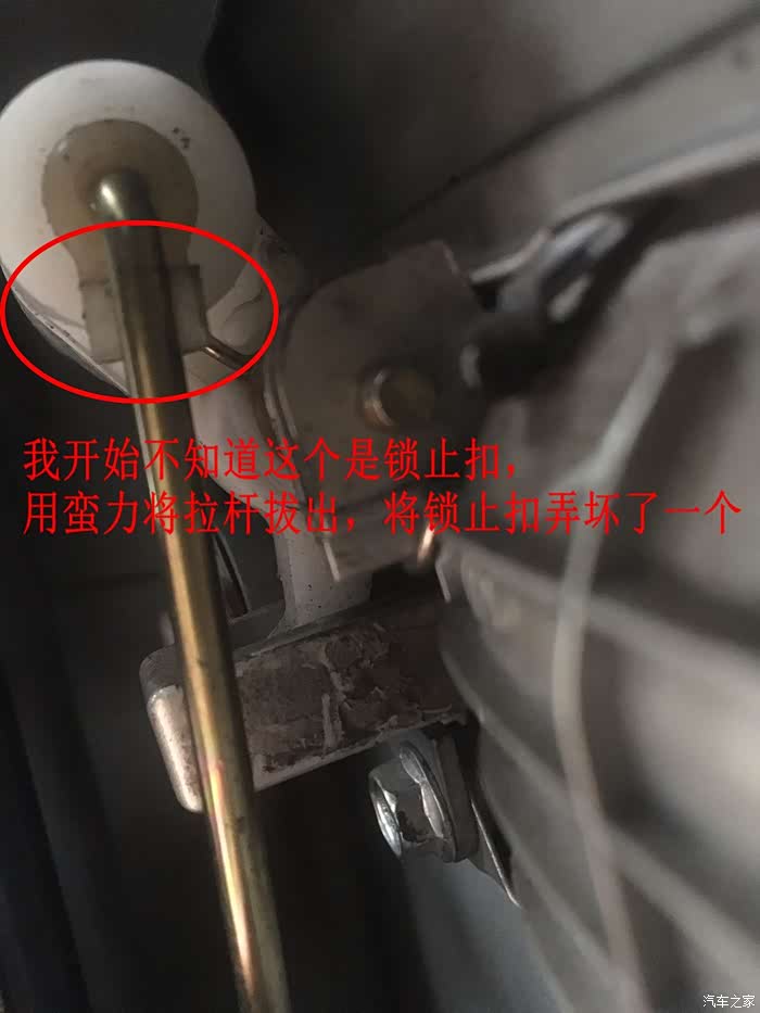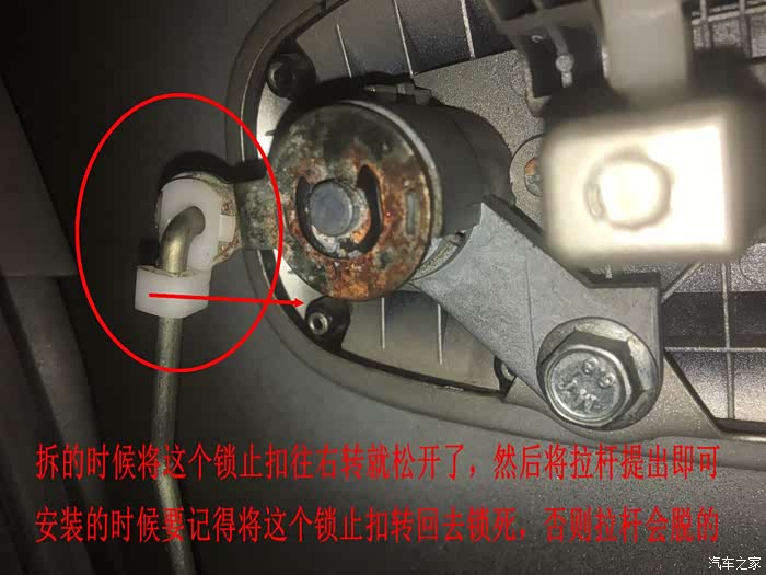 13.松开连接外把手的两根连杆(松这些连杆有个小窍门,我下面会说到)