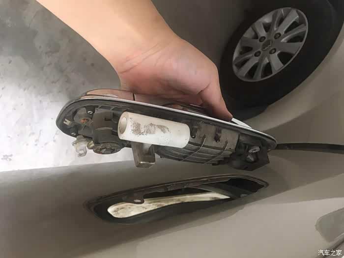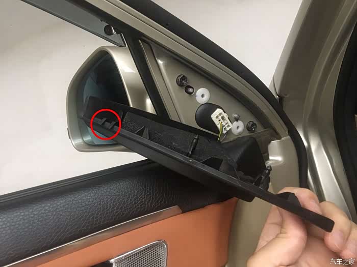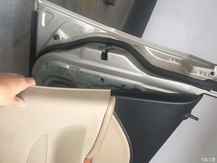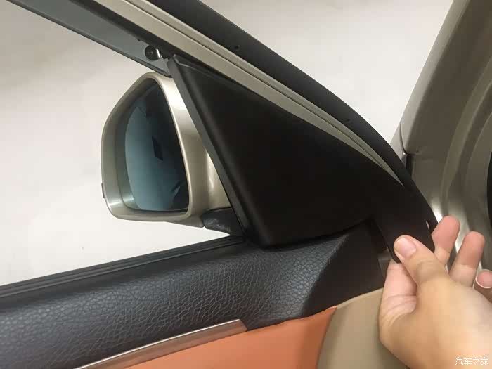 9.螺丝与三角盖取下来后就用双手从下面开始拆内饰门板