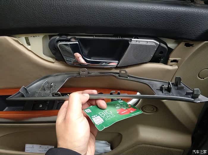 升窗机先到货,如果换碳刷能解决,这就和上次的后备箱锁一样当备件了。先拆拉手周边的银饰板。