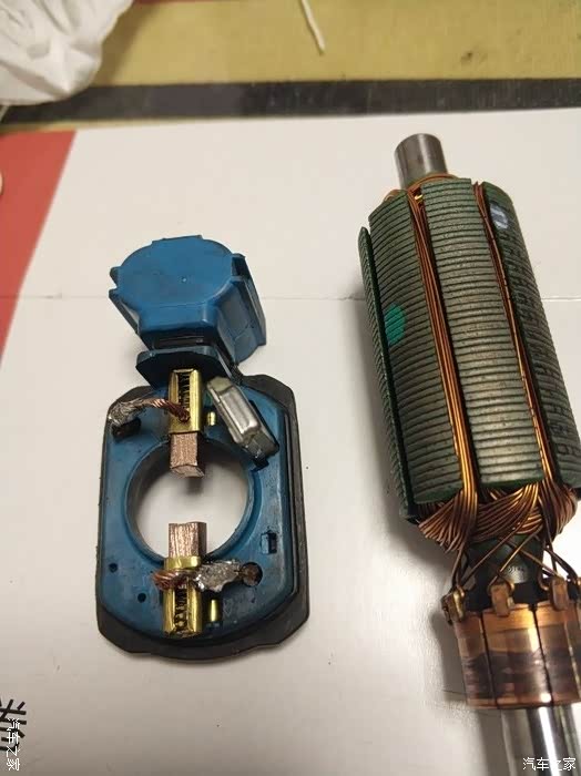 电机转子的导电铜片上全是碳刷粉末。