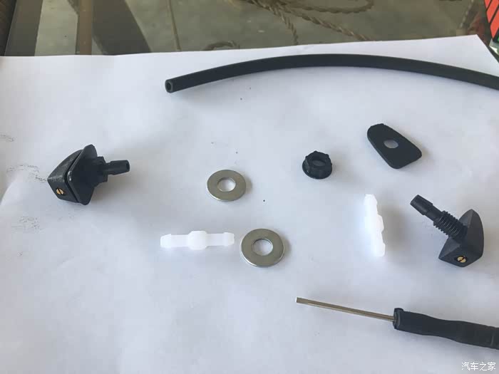 相信大家都凯越的前挡玻璃喷水一条直线很烦恼的哦!这次我在网上买的扇形喷水头价格不贵15元一对哦!这个在网上搜扇形喷水头就可以了!而且更换也很方便哦1需要一个工具就可以哦!