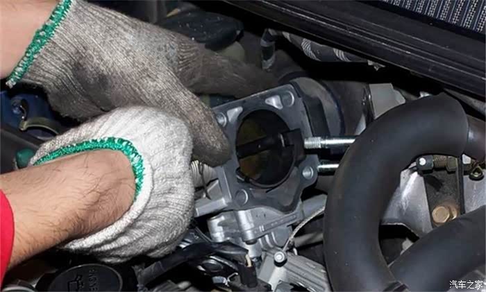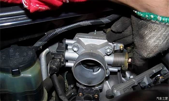 汽油滤清器弄好之后就开始清洁节气门了,这个位置就是节气门了。