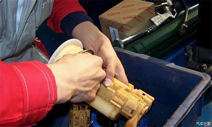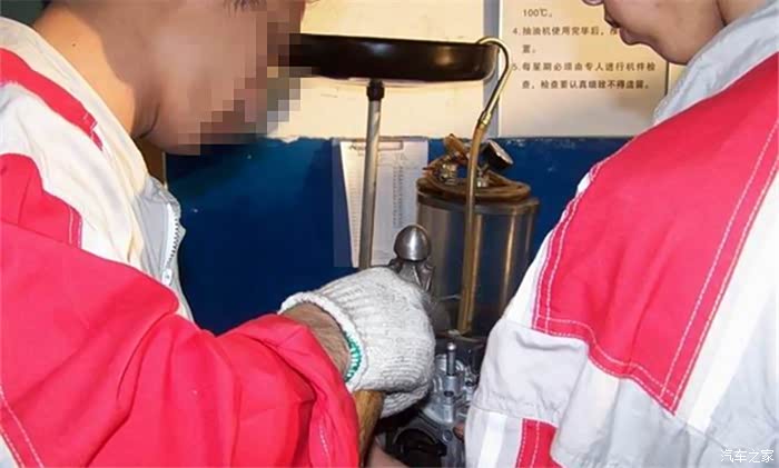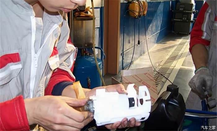 这个就是汽油滤清器了,现在工作人员在进行清洗。