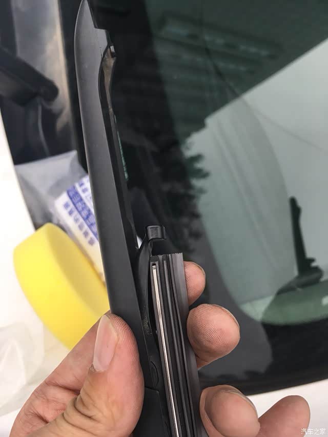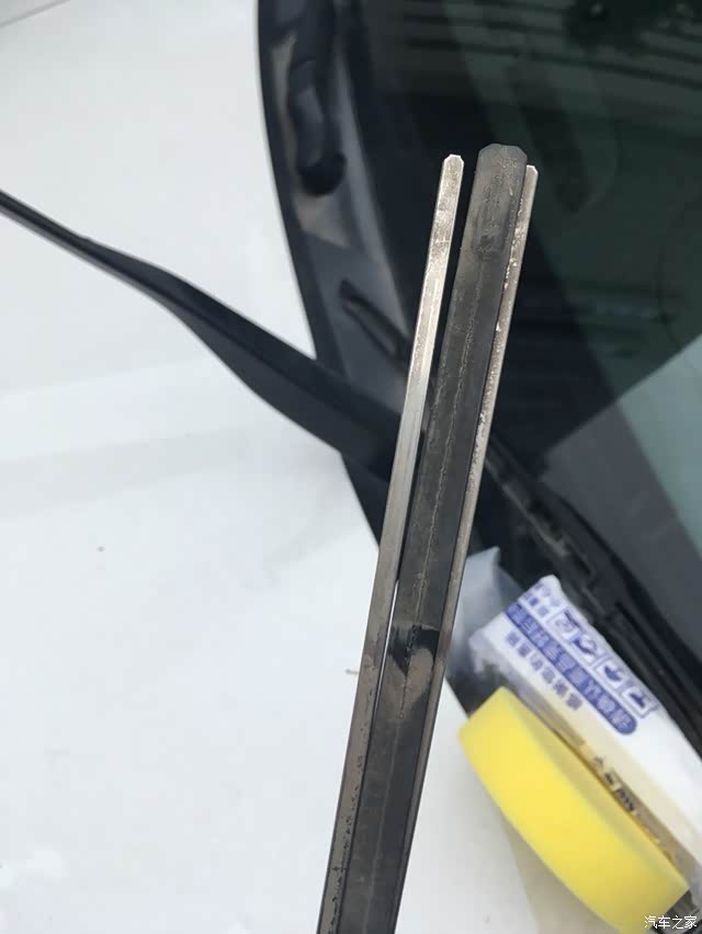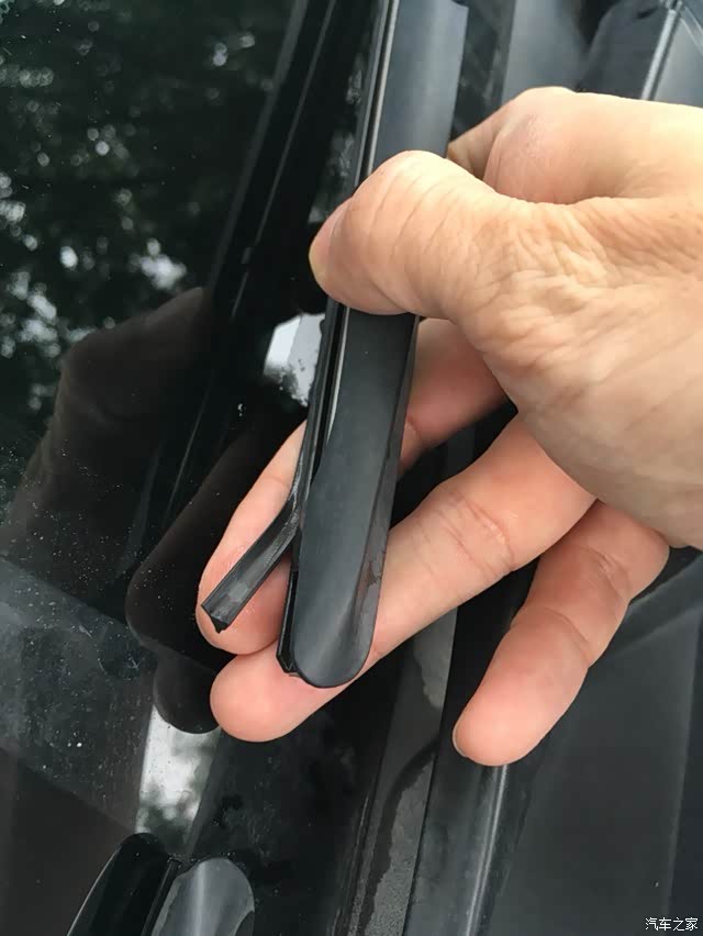 雨刷器用了两年了,已经刮不干净了。这几天下雨,偶然间发现胶条老化裂开了,到了不得不换的地步了。