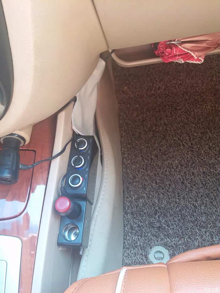 档把,用的时间比较长了,皮子起层,本来想换个档把。但真不想折腾了,某宝买的自己缝上的,旁边的是电源带电源控制的,分别有行车记录仪电源,电子狗电源,净化器电源,有个位置是给遥控器充电用的(我一个原车的报警,因为小区里孩子都比较淘气经常上车顶,所以自己加装了一个报警,一碰就响的那种。还一个好处就是再也不怕钥匙锁在车里了)