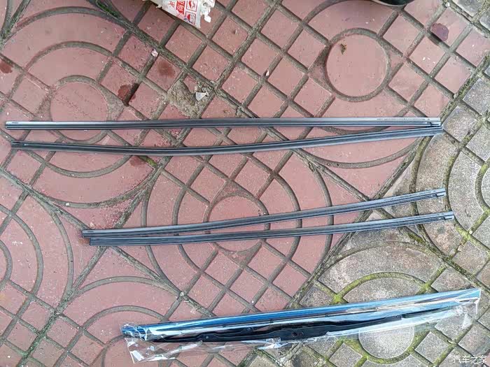 因为我的雨刷刚换完所以拿了一对新的示范,地上的4根胶条某宝上买的,22和19的