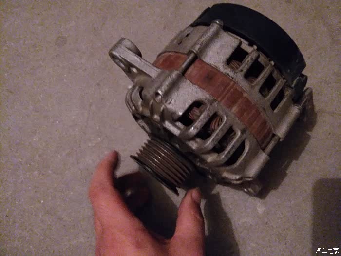 传说中的发电机原厂的,车上现在的是副厂的,也用了3年了,当时是里面轴承坏了没备件,所以换了个副厂的300大元,这个原厂的现在修好了只能当备件了。