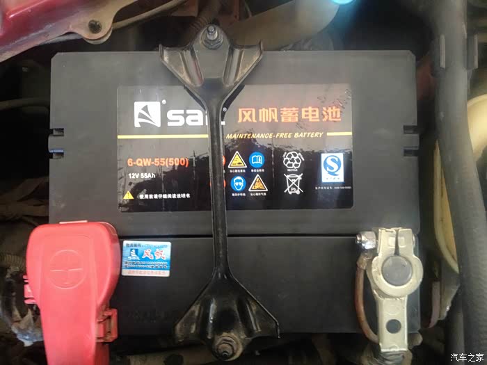 这是将要换的新电瓶,国产风帆蓄电池55H