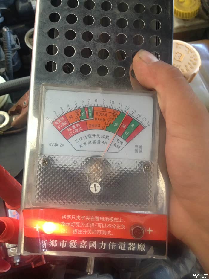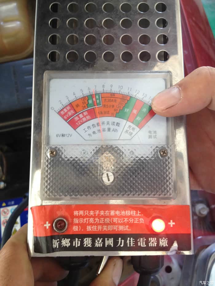 先测一下电瓶容量。显示电压6.5V,达到更换的程度了,正常值为10V以上。
