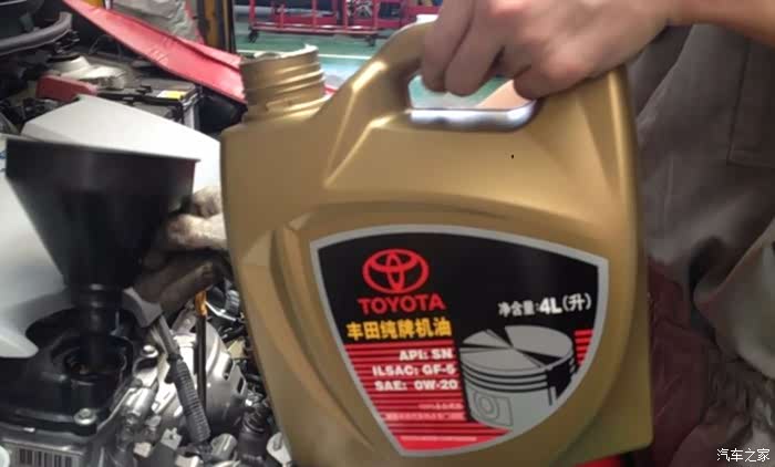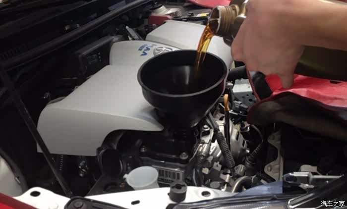 把金黄的机油倒进去。