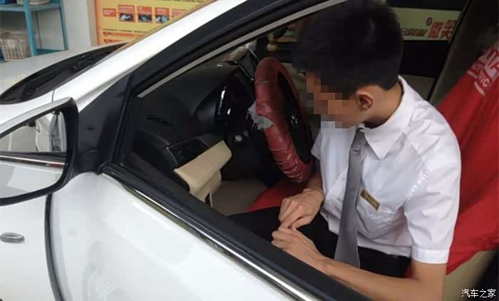 工作人员上车登记的时候先把保护套套在座椅上,然后自己又坐了上去,这个小细节就暴露出4S店的贴心服务,让我瞬间心里暖暖的,工作人员仔细的做着记录。