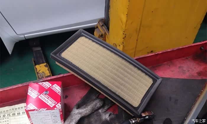 这是取出来的空滤,和一会儿要新换的机油滤清器。