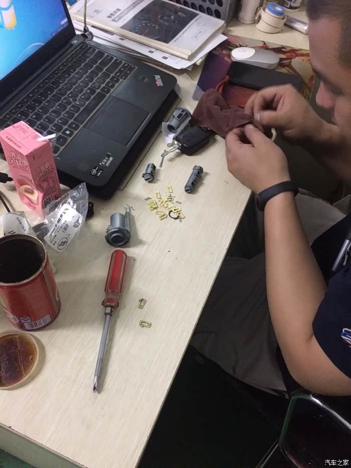 ,当时业务员也是出于好心,花小钱换个配件能用就行,这下完了,配件装上了,转不动,发动不了,成了死锁,拿还拿不下来,我说不行死马当活马医吧,分两步走,一步是加急定全车锁,二是用电专专下来锁芯再试试看,(和原车的还能找组合一套)