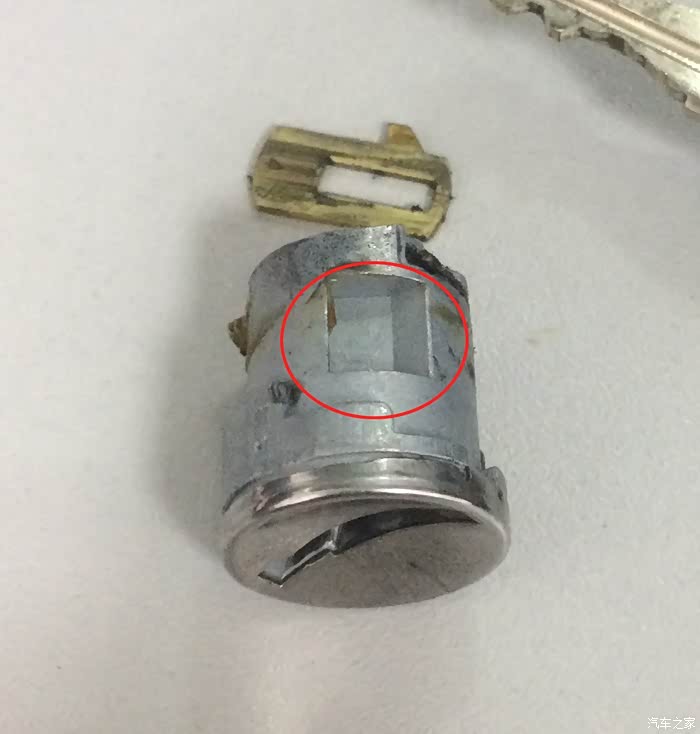 这是把锁芯给带出来的,还没断呢,提醒各位车友,钥匙一定要归位后再拔!!!切记