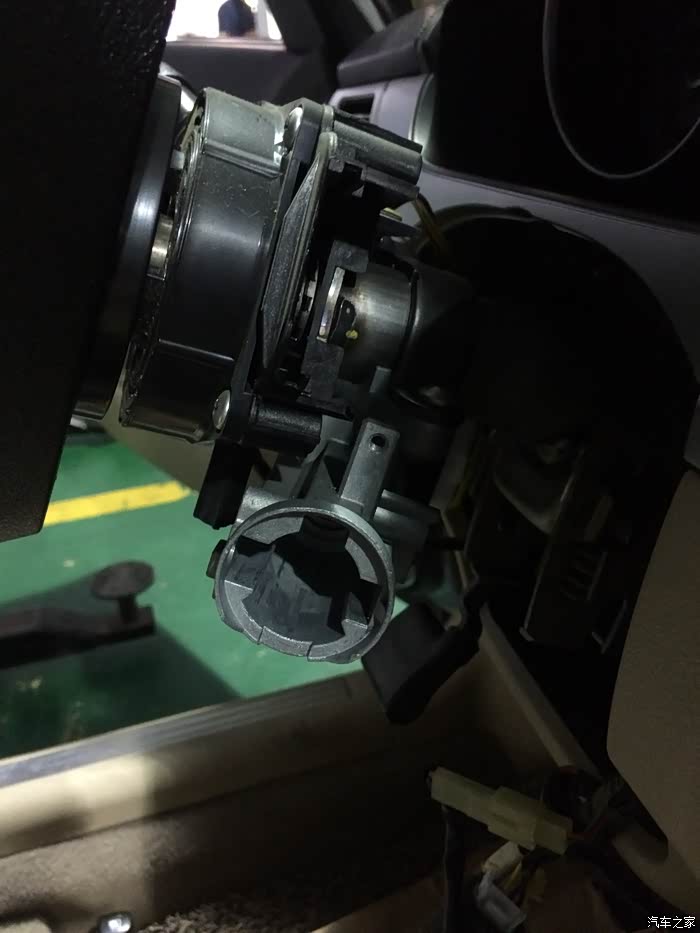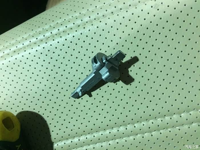 回归正题,中午外出办事,车停好熄火,钥匙未怎么归位(心急了些,之前也有过这样,但都没问题),拔钥匙,拔不出来,一看,锁芯给带出来了,想再安进去放不去,拔也拔不出来,转也转不了,心想完了,要叫拖车了,后来打车友会的师傅求教未果,索性就用点力拔,一拔就这样断了。直接上图
