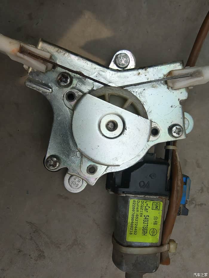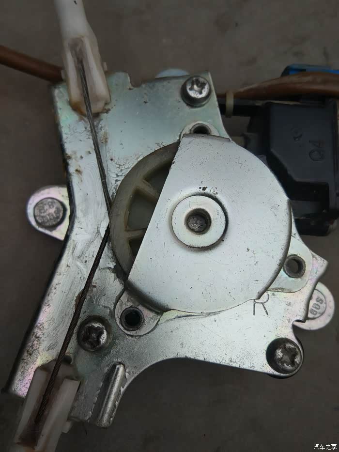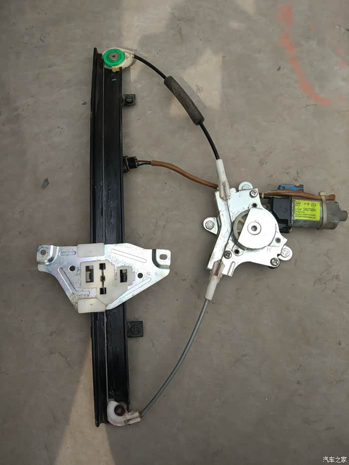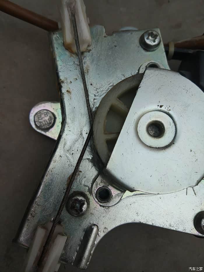 右后车窗支架发卡,无法上下。拆下后发现故障原因是多股钢丝中有几根发毛,断了的钢丝卡住了滑轮,导致玻璃无法升降!剪掉发毛的钢丝(如果断的太多根,还是换新的吧),重新涂上黄油安装后功能恢复!拆装方法见相关帖子。