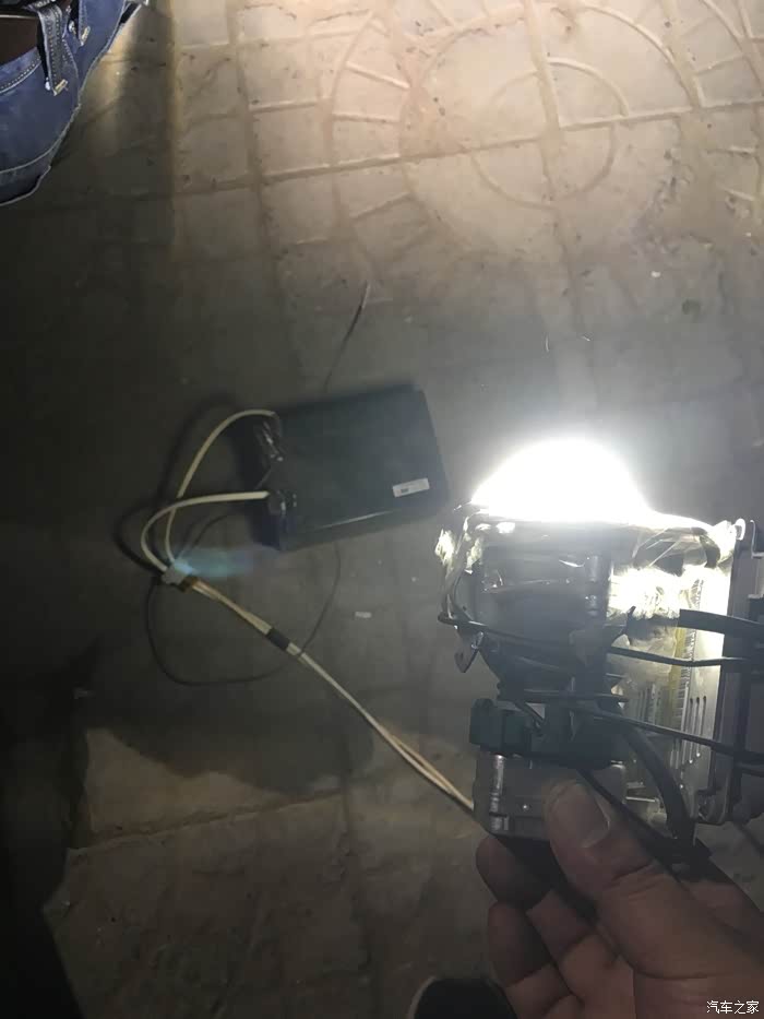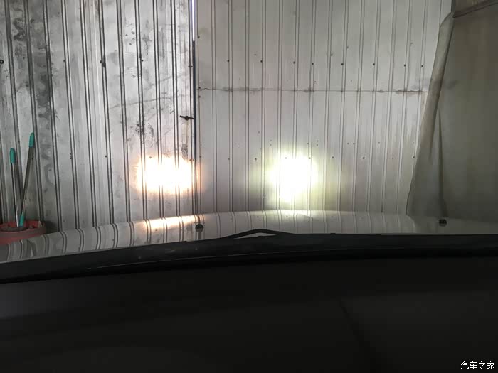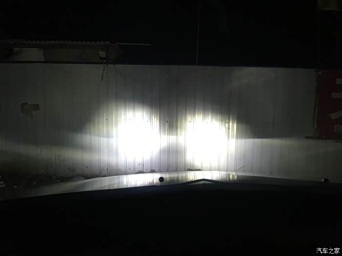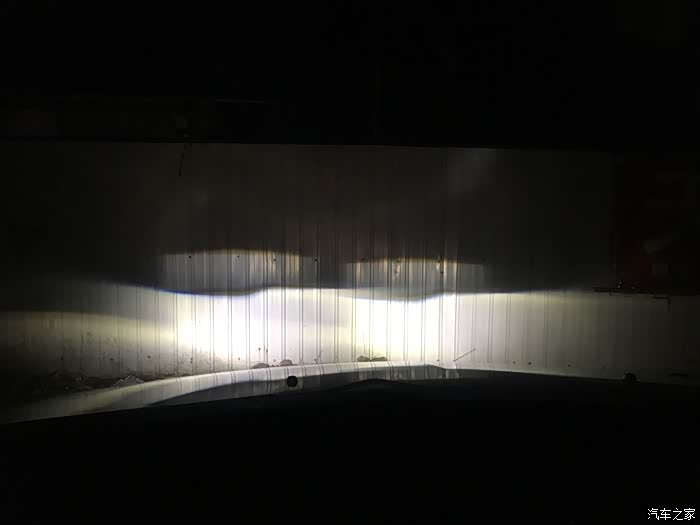 好不容易等天黑了,在没装前杠的前提下试车,这是近光灯。本来打墙的效果非常不错,结果开出来就完蛋了,我勒个去,这是什么玩意。
