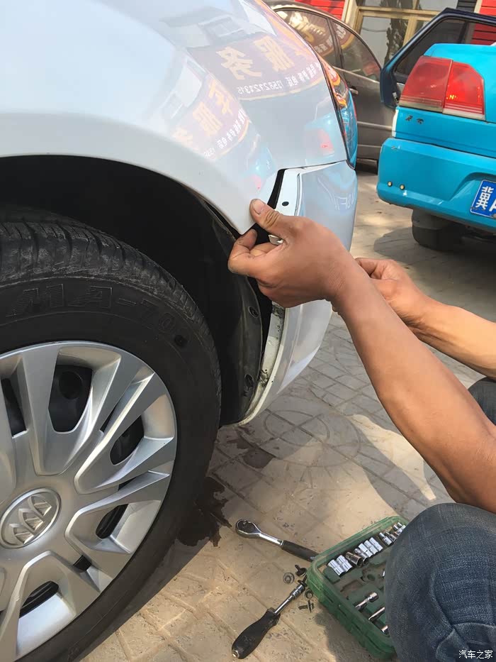 正在拆前杠。凯越的前杠真的不好拆,因为我要求不拆中网的情况下拆除前杠,更不好拆了,前杠中间靠两边一边一个卡子,在车牌照的地方还有两个卡子,不拆中网这4个卡子真的不好拆,因为拆了中网之后很容易断扣,中网就不好固定了。拆前杠总计花费49分钟。