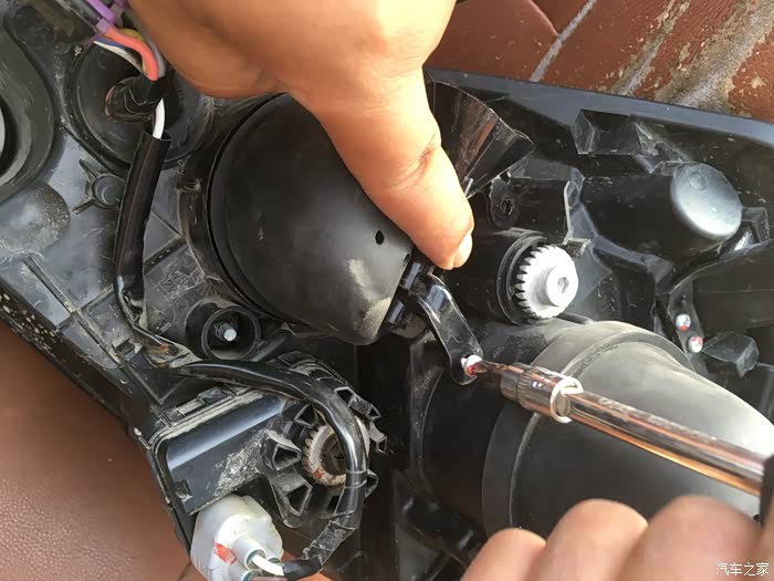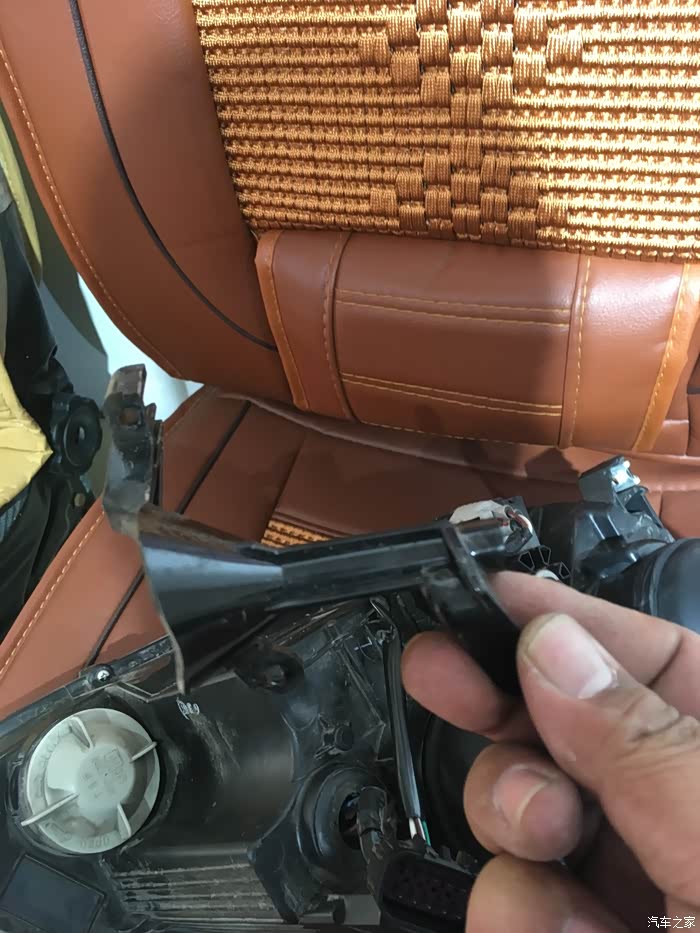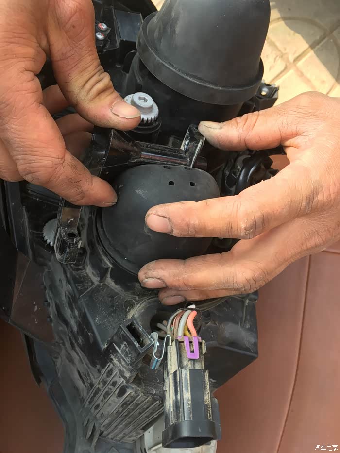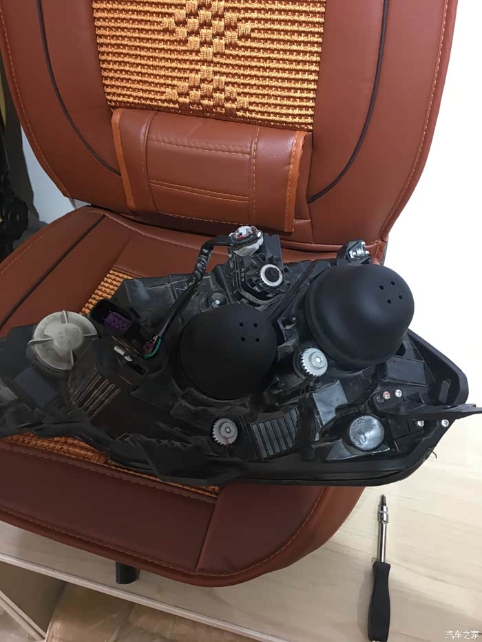 这是拆下来的安装好的大灯总成,图片顺序有点乱了。原车防尘罩因为散热的原因没用,用的后配的加厚的。其实第二弹的时候我就换回原车防尘罩了,这时候是担心散热不敢用。